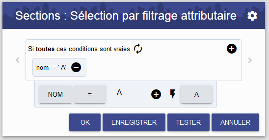 Puis choisir l’outil de sélection (filtre alphanumérique). ![]()
